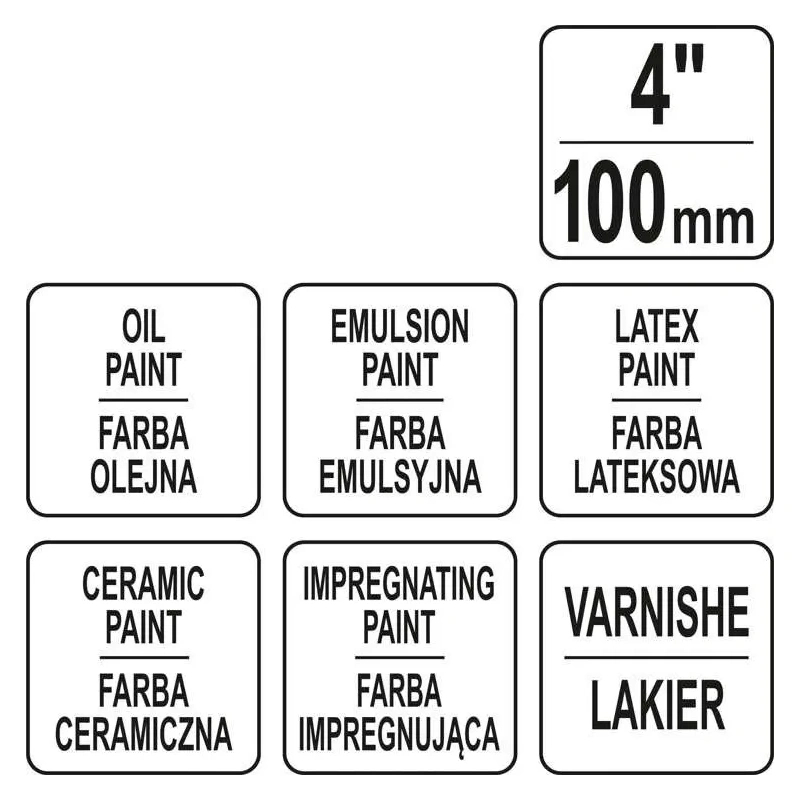 Mõeldud õli, emulsiooni, lateksi, keraamiliste värvide, immutuste ja lakkidega värvimiseks.• pöögipuit, lakitud käepide