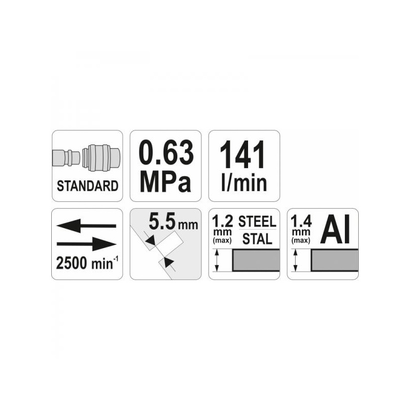 Plekikäärid suruõhu 1,2mm plekk ja 1,4mm alumiinium max 141L/min 5,5mm lai lõige YT-09945