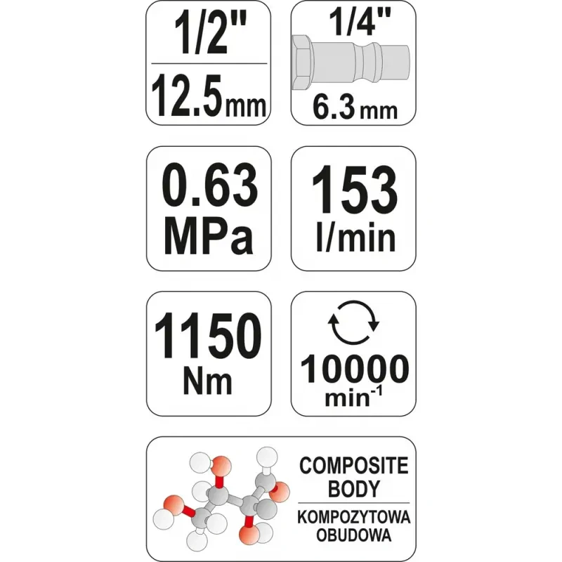 Pneumaatiline mutter 1/2 "1150 Nm YATO-st.