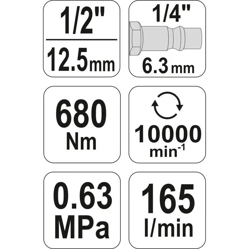 Pn.mutrikeeraja 1/2" 680Nm 165l/min YT-09513