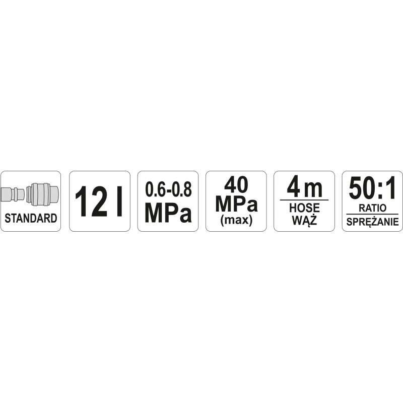 - pumba rõhk 8 bar suruõhu korral: 300-400 bar