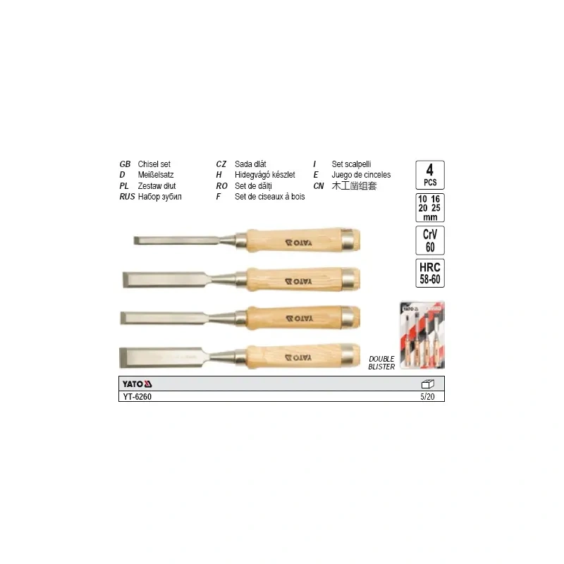 Puidu peitlite komplekt 4tk 10-25mm 6260