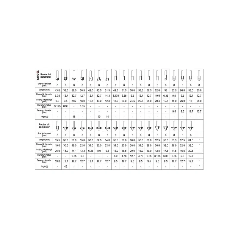 Puidufreesid 35osa D8mm YT-6803