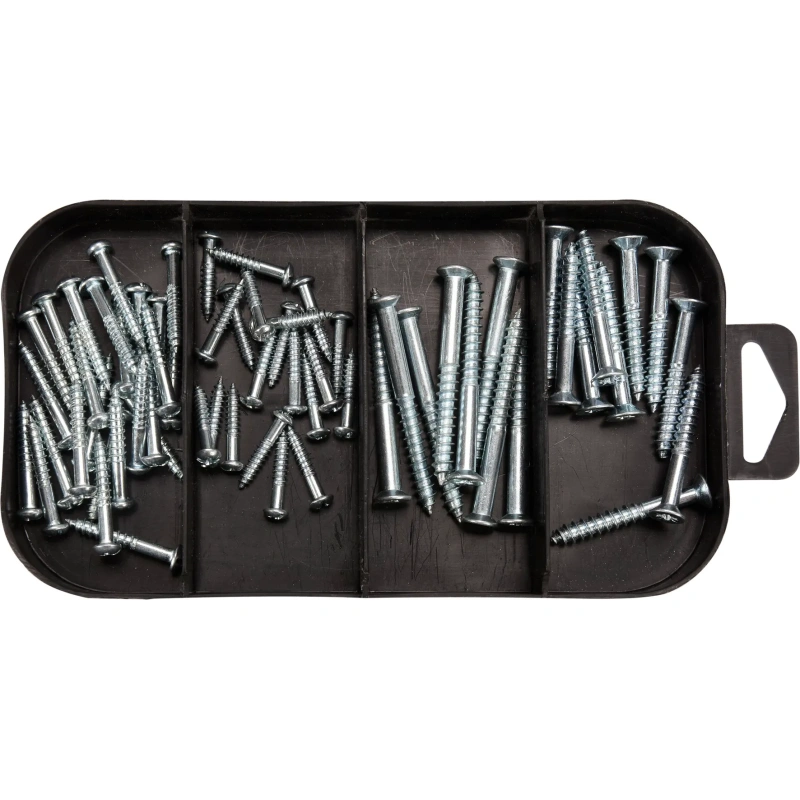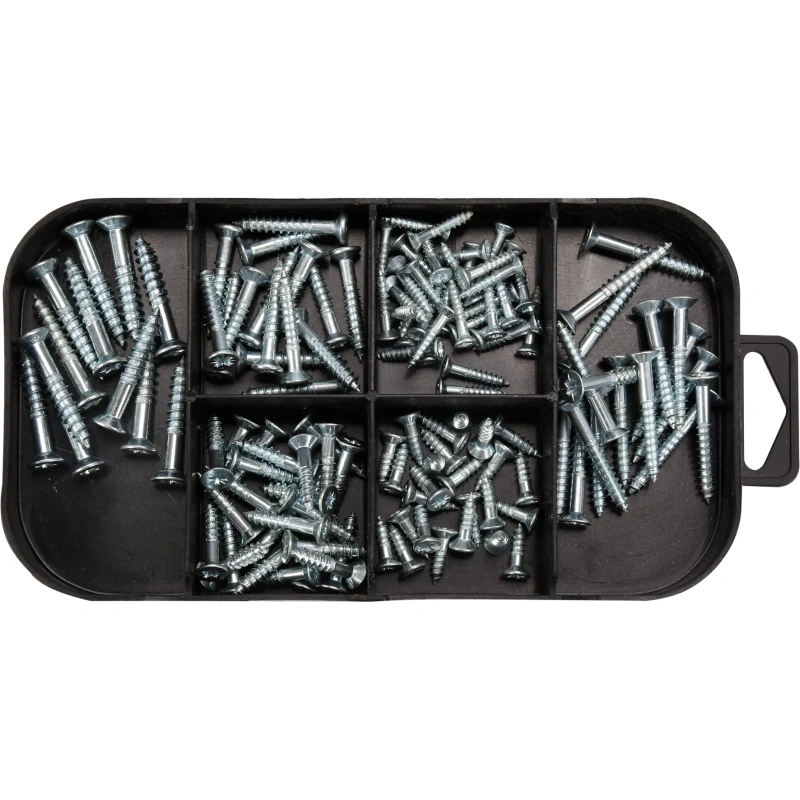 PZ-upppeaga kruvid:3 x 16 mm (35 tk), 3,5 x 12 mm (25 tk), 4 x 19 mm (25 tk), 4 x 25 mm (15 tk), 4 x 30 mm (17 tk), 5 x 30 mm (12 tk), 5 x 40 mm (10 tk), 5 x 50 mm (8 tk)