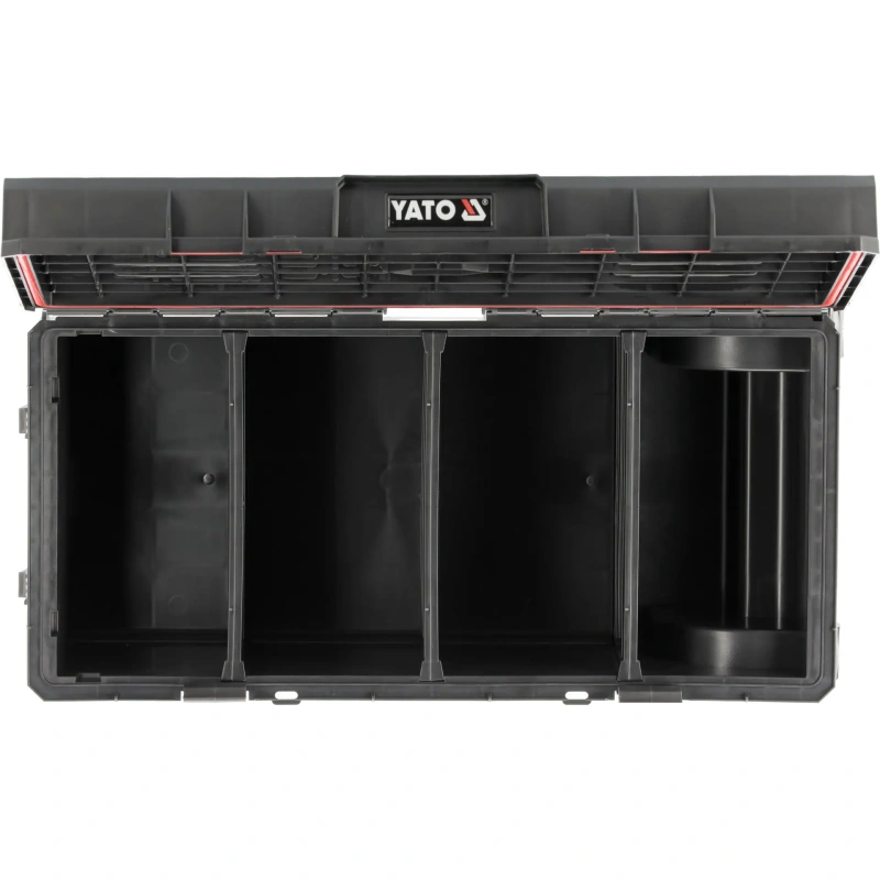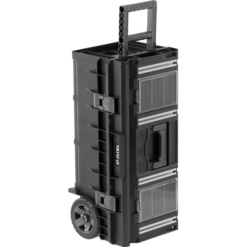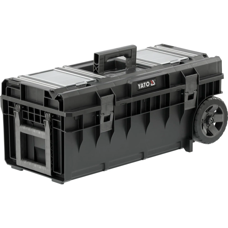 YATO YT-09185 ratastel tööriistakast pakub mugavat lahendust tööriistade ja väikeste elementide ladustamiseks ja transportimiseks. See ruumikas ja ergonoomiline kast võimaldab mugavalt kanda ka pikki elektrilisi tööriistu nagu löökpuure ja betoonisegureid koos vajalikud tarvikud.