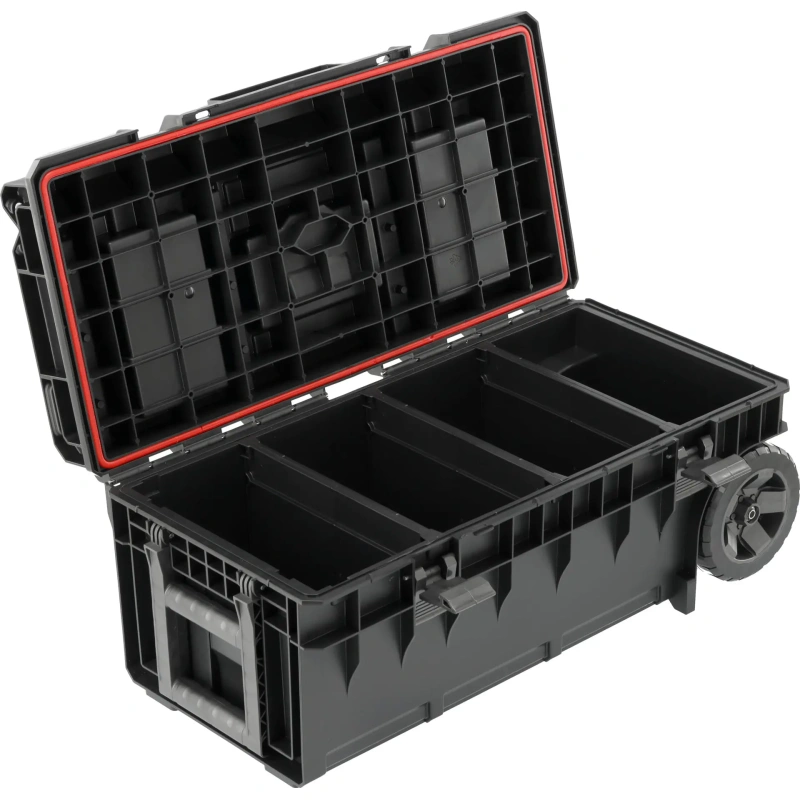 - mugav käepide ja 2 kummist ratast tagavad manööverdusvõime ja lihtsustavad isegi raskete tööriistade transportimist