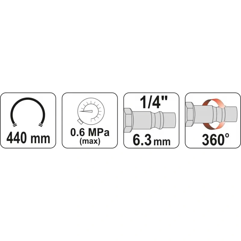 - 1/4 "ühendus on pöörleva korpuse külge kinnitatud - see takistab pneumaatiliste voolikute kallutamist.
