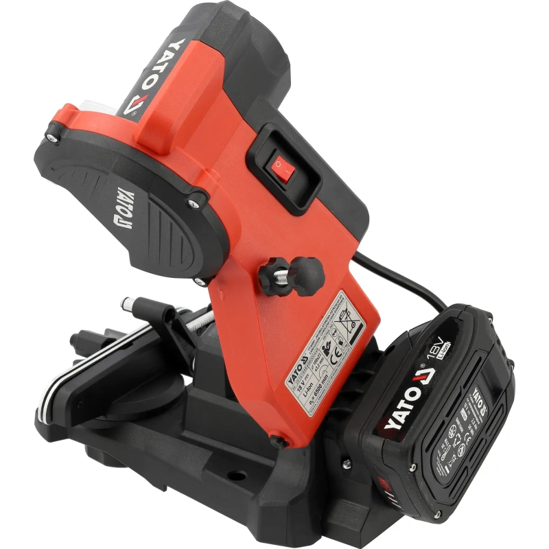 18V liitium-ioonaku toiteallikana säilitab teritaja täieliku liikuvuse ja on valmis tööks igal ajal, kui kett vajab teritamist. Aku laadimise taseme indikaator võimaldab reaalajas jälgida energia taset ja planeerida tööd väljaspool töötuba, näiteks metsas, saeveskis või katusekonstruktsioonide lõikamisel.