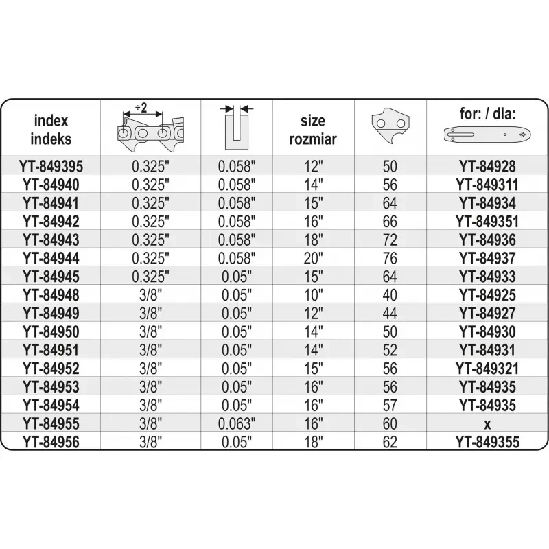 Lõikekett bensiini ja elektriliste kettsaagide jaoks YATO YT-84949.