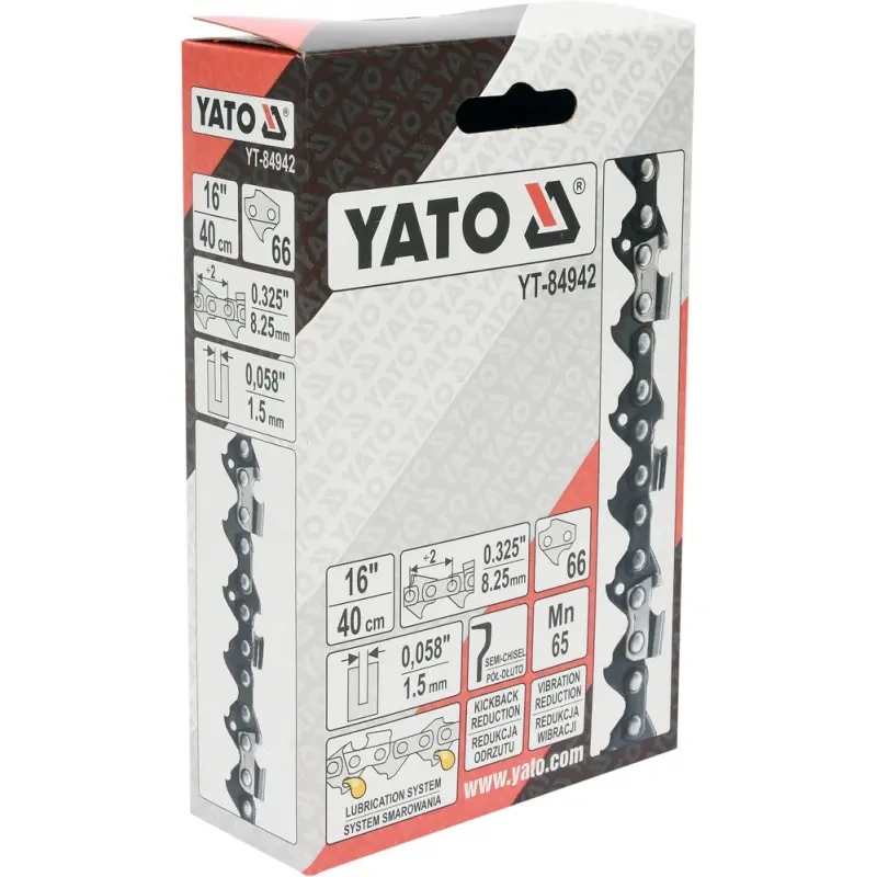 Saekett mootorsaagide ja elektriline väljalaskesüsteemi. Pikkus 16 ", 66 rakkudes helikõrgust 0,325", mille laius 0,058 "(1,5 mm). Hammaste lõikamine peitlit-tüüpi pooleldi kiire lõikamine. See on ette lõigatud puidu puhastatud ja määrdunud keskkonnas. See on valmistatud mangaanterasest Mn65 et Parandab tõmbetugevuse, mis oluliselt pikendab keti.