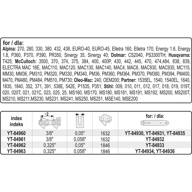 Ketti YATO YT-84950 saab kasutada kettsaagide jaoks: