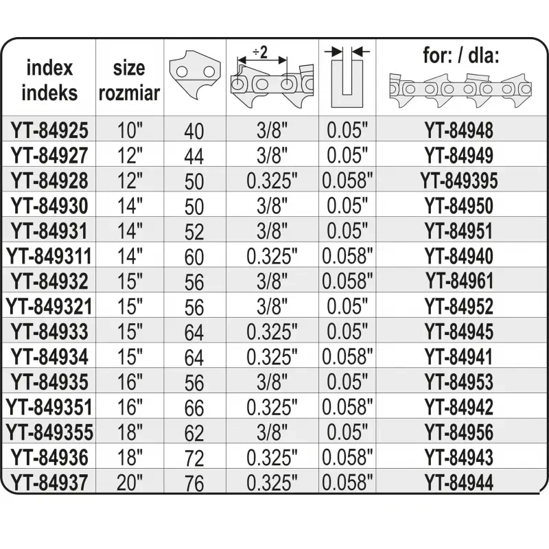 Saelatt 12" 3/8" 1,3mm YT-84927