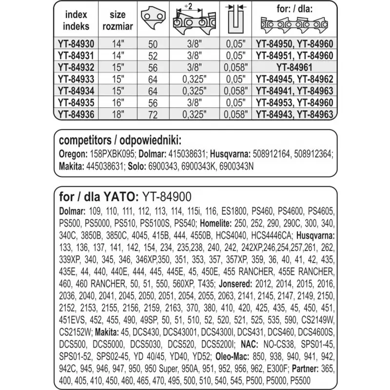 juhend YATO YT-84934 saab kehtib järgmise saed: