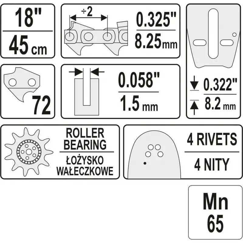 Saelatt 18" 0,325" 1,5mm 45cm YT-84936