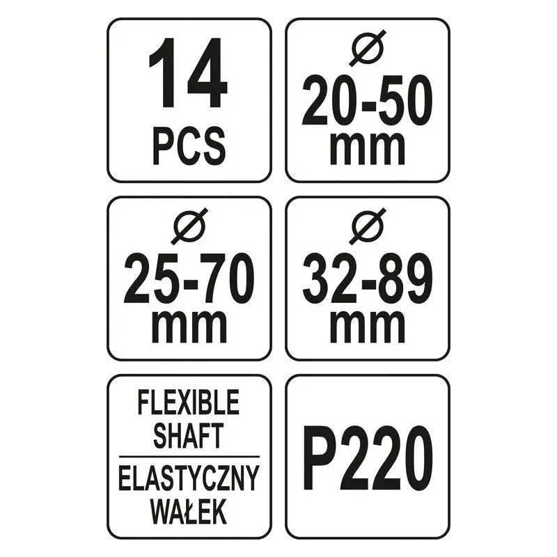 Komplekt sobib auto piduri- ja sidurisilindrite, mootorratta mootorisilindrite, muruniidukite, päramootorite ja väikeautode mootorisilindrite lihvimiseks. Lihvmasinaid saab kasutada iga muudetava kiirusega puuriga.Komplekti tööriistad katavad laia silindri ava läbimõõtude valikut 20–89 mm.