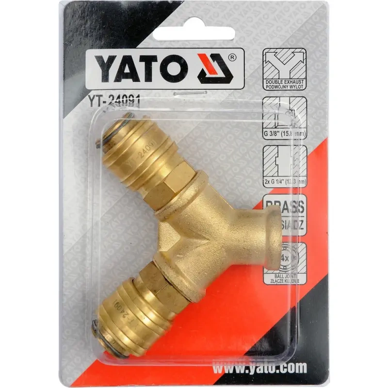 Splitter 2 x messingist ühenduspesa õhuvoolikutele 1/4 ". Sisekeere G3 / 8"