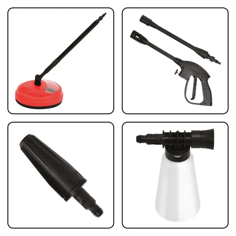 Mõeldud autode, ehitus- ja aiatehnika pesemiseks. Komplekti kuuluvate lisaseadmete abil võimaldab see sillutuskivide, terrasside, treppide ja fassaadide kiiret ja põhjalikku puhastamist. Kõrgrõhk - kuni 150 baari - võimaldab eemaldada lindude väljaheidetelt ja mudast isegi kuivatatud mustuse.