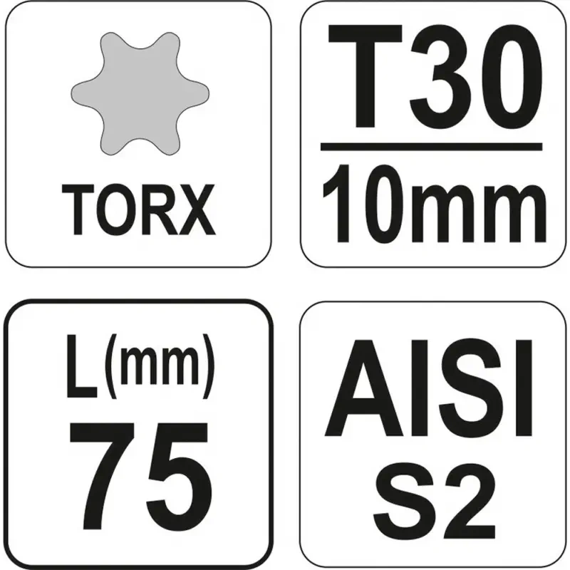 T30 Torx otsik pikk 75mm 10mm YT-04052