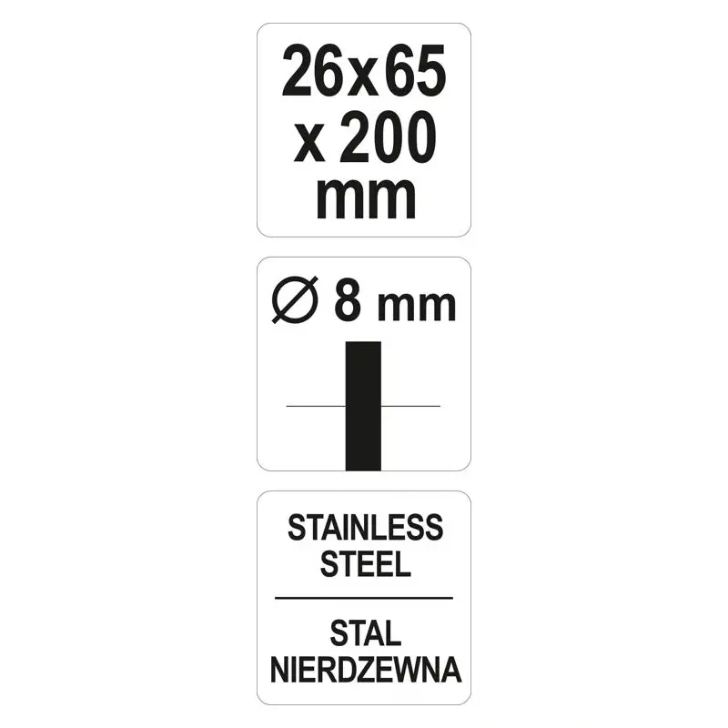 - Mõõtmed: 26 x 65 x 200 mm