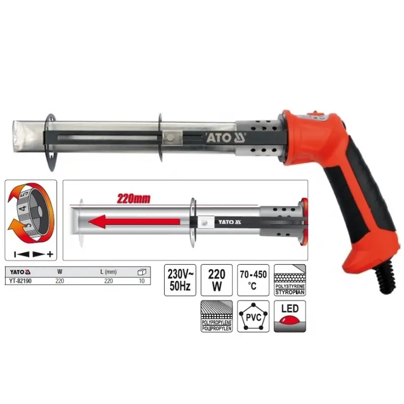 Termiline nuga on varustatud temperatuuri seadistamise potentsiomeetriga, valguse signaalil tööks valmis ja liugur sobiva tera pikkuse seadmiseks. Seadet iseloomustab lihtne toimimine ja mugavus.