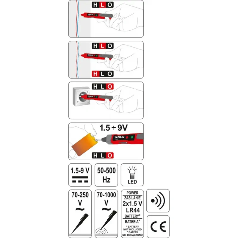 YT-28631 pinge tester on universaalne Elektrikutestrid, mis võimaldab teil avastada juuresolekul elektriline pinge, avastamiseks vahelduvpinge, nt all krohv, samuti läbi kaabli pidevuse test ja seisundi kontrollimiseks patareid või akud. Pinge olemasolu näitab ühe testeri korpuses asuva dioodi valgustus.