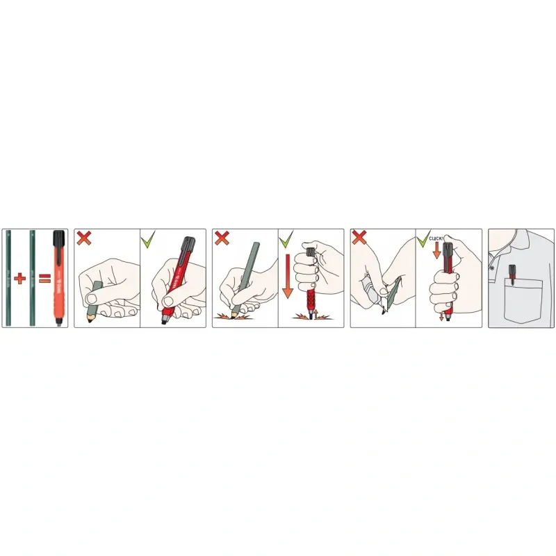 Tehnilise rakendusega laia automaatse väljatõmmatava grafiidiga pliiats. Kergekaaluline plastkere, millel on elastsed klambrid. Sõltuvalt kasutatavast grafiidi padrunist on see mõeldud erinevatele materjalidele. Komplekt sisaldab kuute grafiitkassetti koos HB kõvadusega mahutiga.