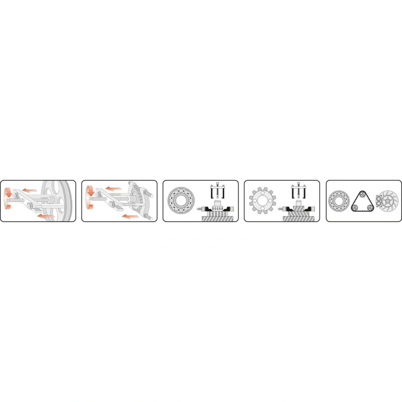 - 14-osaline komplekt laagrite, hammasrataste, piduriketaste jms eemaldamiseks.