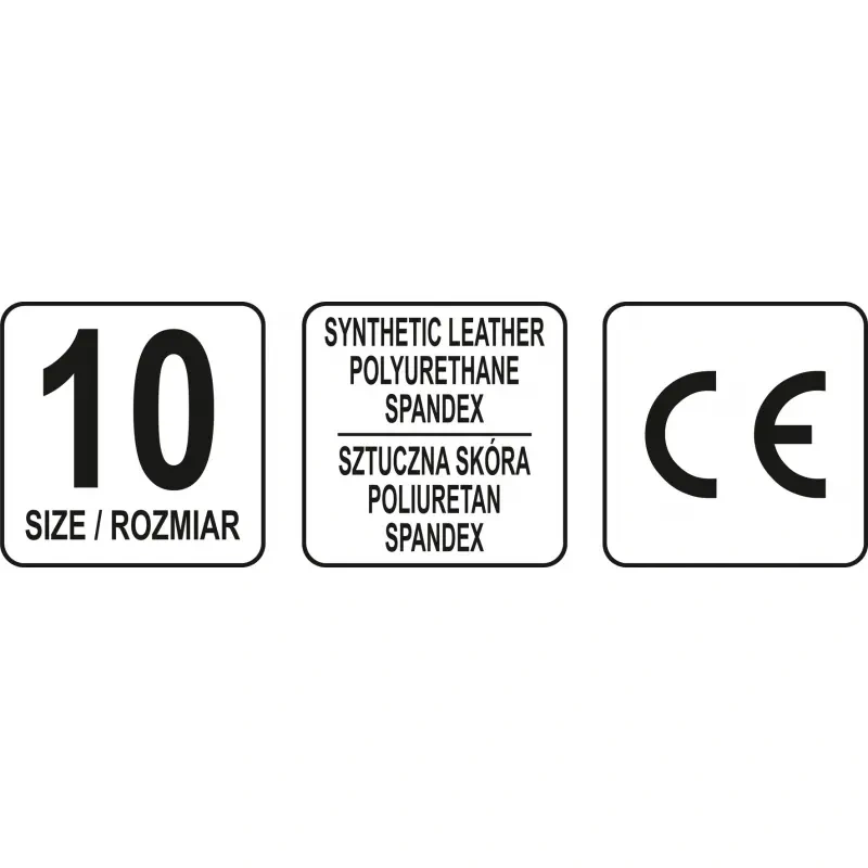 Sünteetilised kindad, mis on valmistatud "kunstnahast" tüüpi kangast + sünteetilisest elastaankangast. Neil on haardes ja sõrmeotstes tugevdused. Elastne riba mansett Velcroga. Must / tumesinine.
