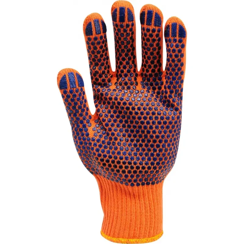 PVC-ga haardeosas puuvillased kindad, mis parandavad haaret ja suurendavad vastupidavust hõõrdumisele. Tavaliselt kasutatakse mehaaniliste ja puusepatoodete ehituses, tööstuses ja aias töötamisel. Suurus 8. Pakendi sisu 5 paari