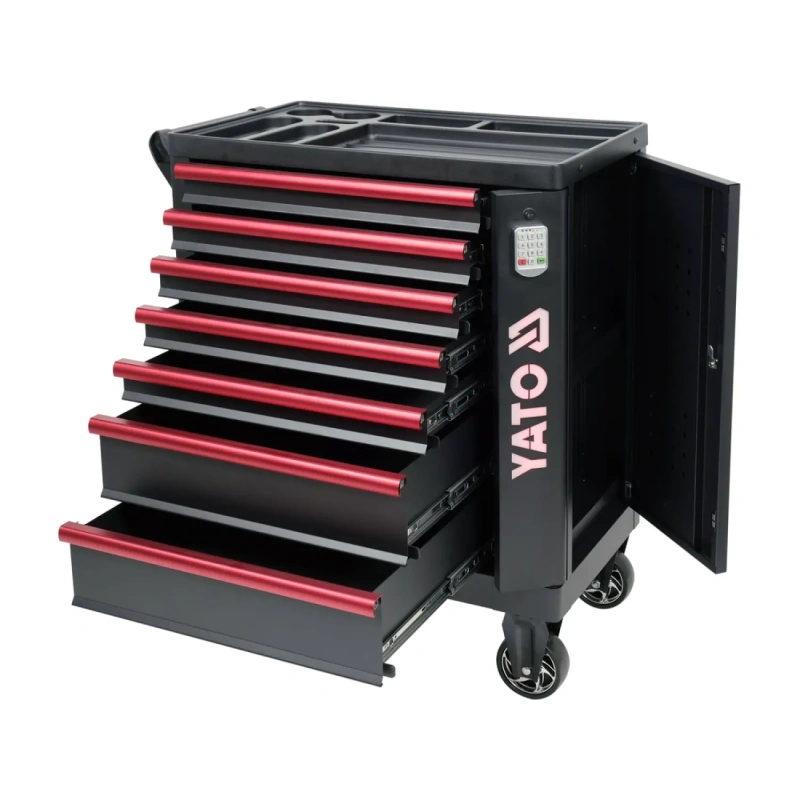 Hooldustööriistakapp YATO YT-09004 on ideaalne varustus professionaalsele teenindusele ning neile, kes otsivad usaldusväärseid tööriistu garaažis. Kapp on varustatud digitaalse lukuga ja valgustatud logoga, sobides kõigile YATO tööriistadele.