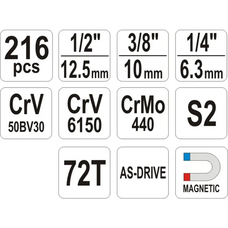 Tööriistakohver 216osa 1/4" 3/8" 1/2" YT-38841