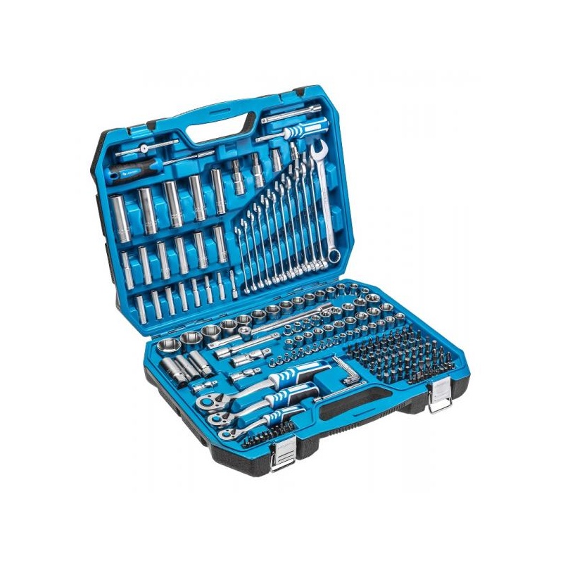 - kvaliteetsest CrV-legeeritud terasest pistikupesad, näpunäited ja tarvikud;