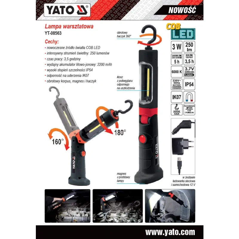 - Tugev magnetikett ja pööratav konks muudavad lambi kergesti ligipääsetavates kohtades kinnitatavaks.