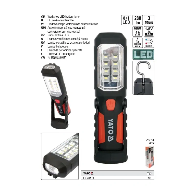 Töötuli LED 2in1 MAGNET patarei 3xAA YT-08513