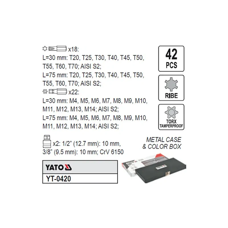 Torx ja ribe komplekt 42osa YT-0420