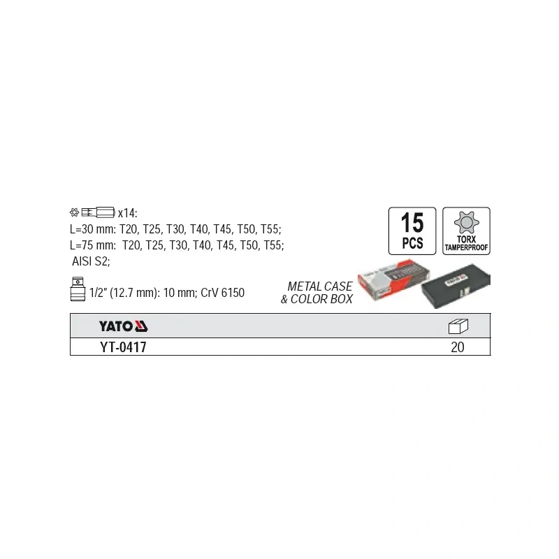 Torx löök otsikute kompl. 15osa T20-T55 YT-0417