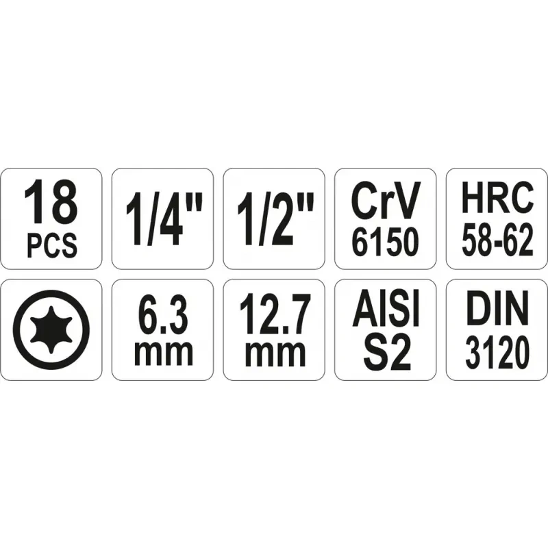 Torx padrunotsikute kohver 1/4" + 1/2" 18 osa 7751