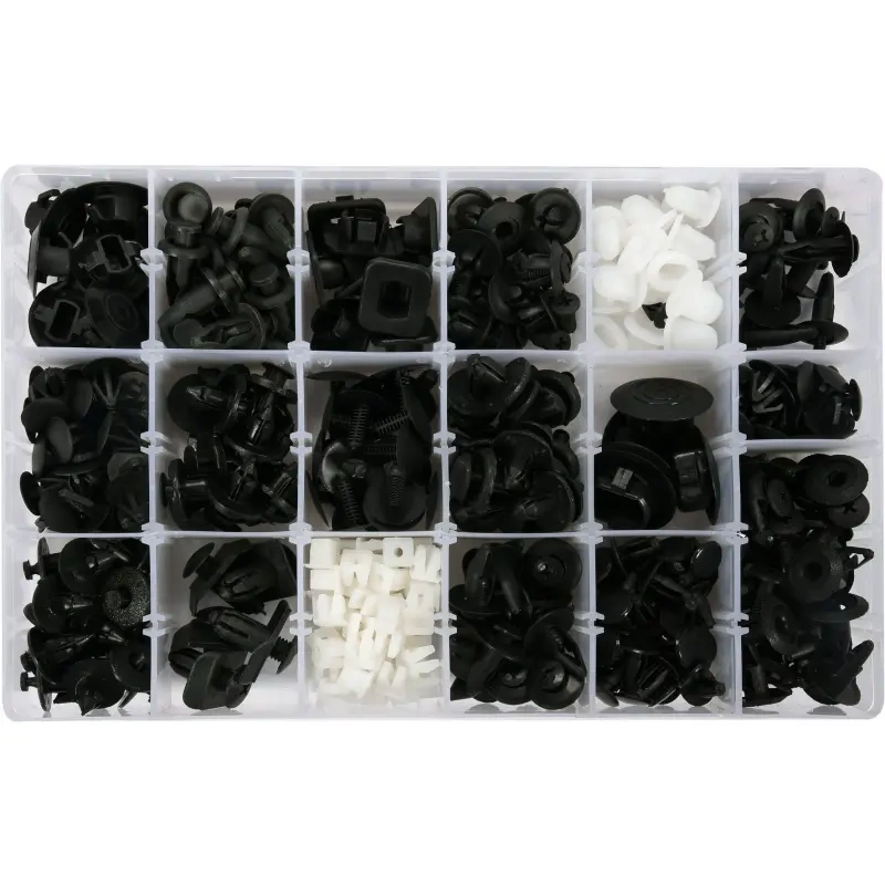TRIM CLIPS ASSORTMENT FOR NISSAN 408 PCS, CONTAINS: 10 PCS DOOR LOCATOR (151.1373), 20 PCS DOOR LOCATOR ( 151.1269), 10 PCS RINGS (151.1704), 18 PCS CAR BODY LOCATOR (151.1131), 25 PCS FIXED CLIPS (151.1370), 10 PCS CAR BUMPER CLIPS (151.1182), 50 PCS LOCATOR (151.0269), 15 PCS LOCATOR (151.1362), 25 PCS LOCATOR (151.3081), 15 PCS TRUNK FIXED CLIPS (151.1372), 5 PCS DOOR LOCATOR (151.1365), 30 PCS CLIPS (151.0260), 20 PCS LOCATOR (151.1176), 5 PCS BUMPER COVER LOCATOR (151.1125), 5 PCS WHEEL FENDER LOCATOR (151.1674), 65 PCS LIGHT FIXED NUTS (151.0394), 20 PCS CAR BUMPER CLIPS (151.1183), 50 PCS CLIPS (151.0198)