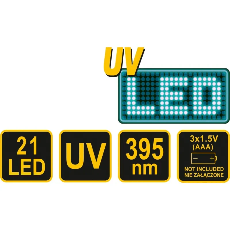 • Täpselt valitud UV lainepikkus (395 nm) selge kontrastsuse tuvastamiseks