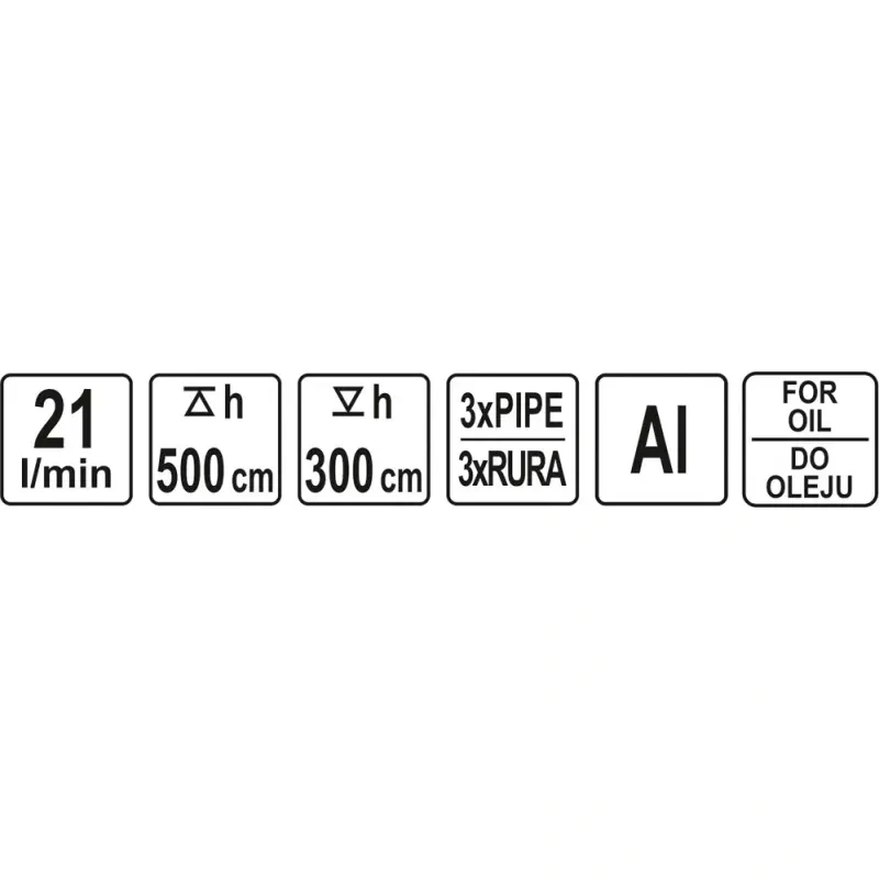 Õli käsipump. Kerge kompaktne alumiiniumkonstruktsioon, mahutavus 21 liitrit minutis. Saatmiskõrgus 5 m, imemisava 3 m