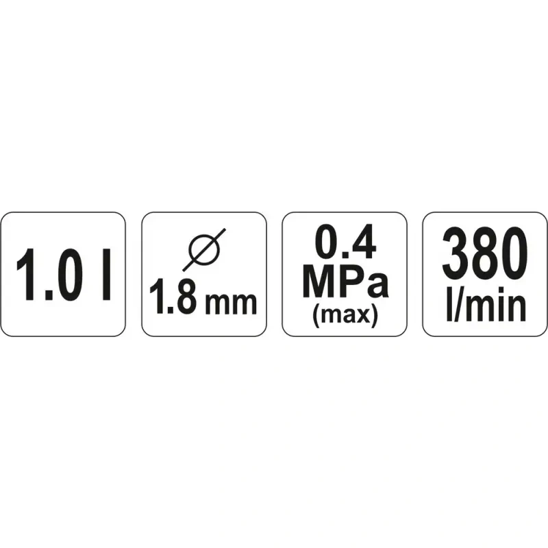 Värvipüstol alapaagiga 1L d1,8 380l/min 1L 1,8mm YT-2346