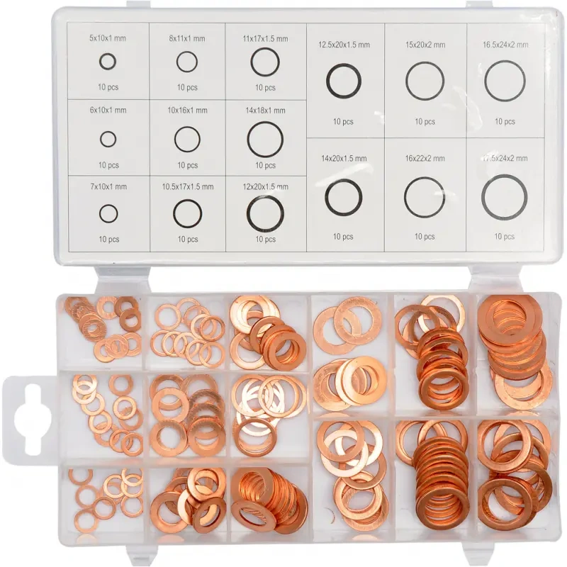 Vaskseibide komplekt töökodade jaoks. Pakendi sisu: 10tk: 5x10x1; 10 tk: 8x11x1; 10 tk: 11x17x1,5; 10 tk: 12,5x20x1,5; 10 tk: 15x20x2; 10 tk: 16,5x24x2; 10 tk: 6x10x1; 10 tk: 10x16x1; 10 tk: 14x18x1; 10 tk: 7x10x1; 10 tk: 10,5x17x1,5; 10 tk: 12x20x1,5; 10 tk: 14x20x1,5; 10 tk: 16x22x2; 10 tk: 17,5x24x2. Kõik pakitud käepärasesse plastkarpi, kus on sektsioonid, mis tagavad suuruse korrektsuse ja nõuetekohase eraldamise.Tehnilised andmed