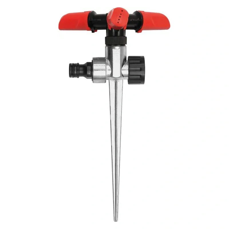 Pöördsprinkler, 3 haru. Tsingisulamist valmistatud tihvt võimaldab hõlpsalt ja mugavalt asetada ka väga tihedale murule. Sprinkler töötab 360 kraadi ulatuses. Puistamise läbimõõt kuni umbes 14 m. See on varustatud kiirliitmiku ja sulguriga.Parameetrid