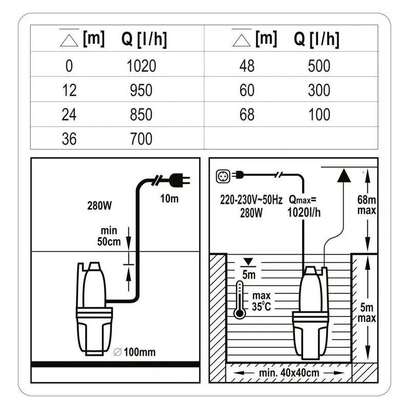 - Maksimaalne kasutegur [dm3 / h]: 1020
