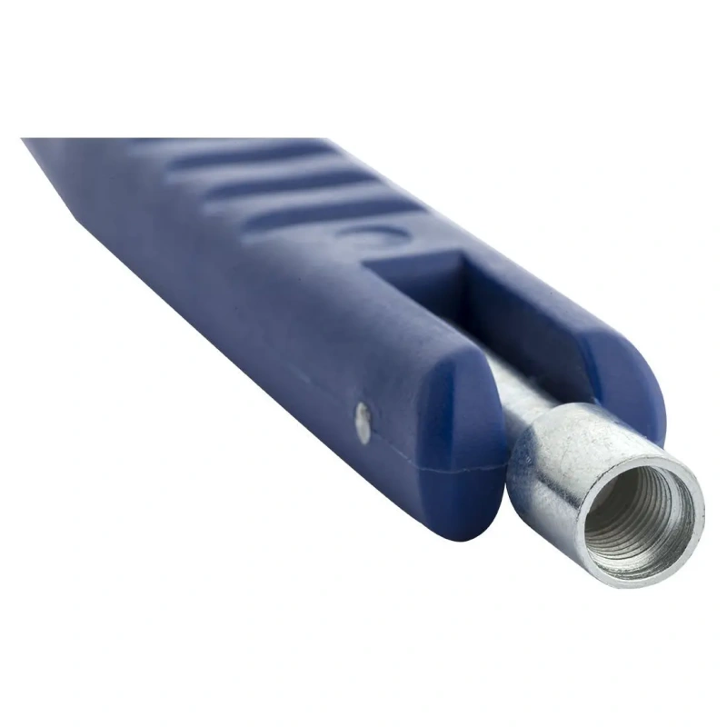 Kruvikeerajaga plastikust ventiili paigaldaja kummiventiilide paigaldamiseks ja vedrukassettide vahetamiseks. Piisab, kui keerate tööriista kiikuva otsa ventiili keermele, toetage kang velje servale ja lohistage seda. Käepideme otsas on vedrude vahetamiseks saadaval kruvikeeraja - kaks tööriista ühes. Seade on valmistatud tugevast komposiidist, hoiab täielikult ära kriimustuste tekkimise alumiiniumvelje serval. Kuulukk lukustab otsa klapi külge keermestades. Aluses olevad sälgud takistavad kangi veljelt libisemist.
