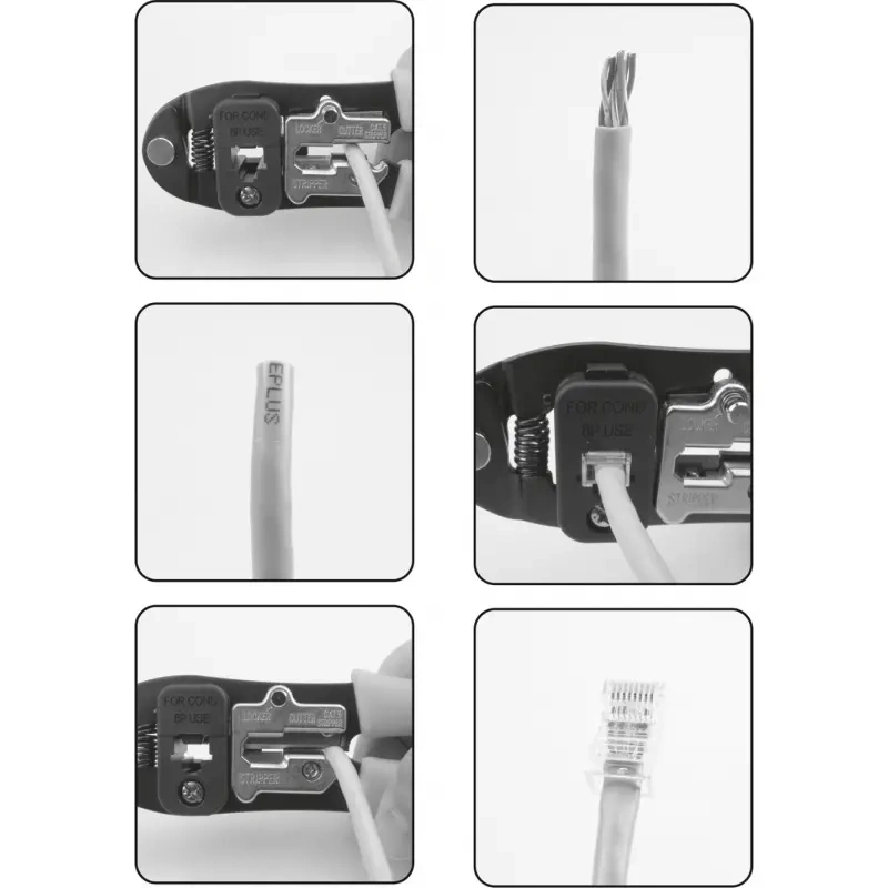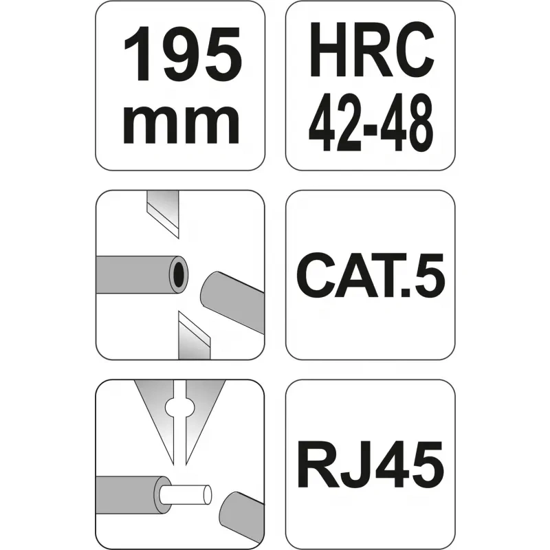 Klemmliistud 8P tüüp RJ45 koos kaabli lõikuriga, CAT.5 lõikur ja eemaldamisvahend. Mugav ja ergonoomiline käepide. Pikkus 195mm.