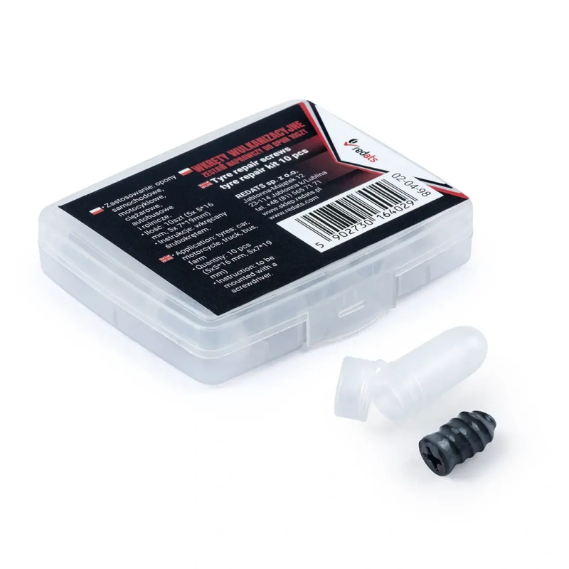 Vulkaniseeriv kruvi parandab rehvi kiiresti ja tõhusalt. Komplekt sisaldab 10 erineva suurusega kruvi: